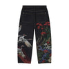High Quality Washed Crane Landscape Embroidery Vintage Japanese Straight Leg Jeans Men's Streetwear