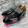 Men's Black Patent Leather Luxury Rhinestone Loafers Handmade Dress Shoes