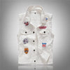 Men's Vintage Denim Vest White Ripped Men Streetwear Hole Waistcoats
