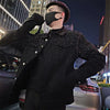 Short Rhinestones Cargo Jacket for Men Black High Quality Harajuku
