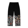 Vintage Japanese Ukiyo-e Floral Pattern Embroidery Wide Leg Jeans Trend Men Streetwear