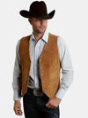 Vintage Suede Leather Men's Vest Slim Fit V-Neck Regular Fit Suit Waistcoat