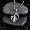 Wolf Head Oval Men's Sliver Stainless Steel Pendant with Turquoise Stone